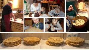 En effet, vous l’aurez compris, la confection de ces galettes est longue et minutieuse. Ainsi, plusieurs semaines avant les fêtes de Noel, ce sont les grands-parents, les oncles et tantes, les cousines et cousins, les parents, les enfants, les ami.e.s qui se retrouvent gaiement pour préparer de grandes quantités de galettes, qui seront conservées jusqu’aux repas fin décembre. Alors… que se passe-t-il en cuisine ?
