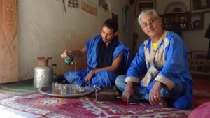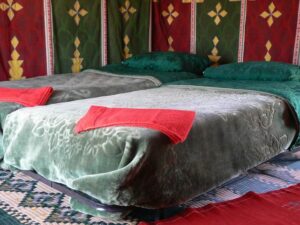 - Le matin, allez randonner autant que vous le souhaitez dans la dépression Oum Dba qui borde le camping - L’après-midi, nous vous emmenons en 4×4 sur la plateau de dunes pour y monter votre bivouac du soir - Cuisson du pain dans le sable - hammam maure fun - Barbecue et feu de camp - Nuit sous tente nomade dans les dunes (bivouac privatif !) et sous les étoiles