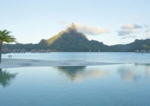 - Bora Bora, véritable paradis tropical, est célèbre pour son lagon bleu étincelant et ses bungalows sur pilotis.