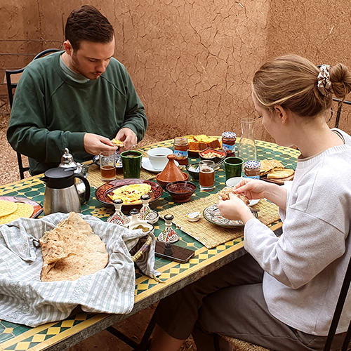 Le Jardin de Yuda s’avère une excellente base pour découvrir et partager les pratiques locales traditionnelles : faire le pain, goûter à la cuisine berbère, pratiquer le tissage de la laine, découvrir le travail de la terre dans l’architecture, suivre des troupeaux sur les sentes rurales.