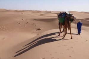 Le désert de l’erg Chegaga, encore authentique et peu développé sur le plan touristique, vaut largement le voyage, à une journée de route de Marrakech, que nous scinderons dans chaque sens en deux pour profiter aussi de l’architecture typique de la célèbre Vallée du Drâa.